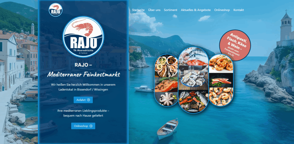 Für RAJO entwickle ich eine moderne, klare Website auf WordPress-Basis, die Genießer direkt ins Ladenlokal führt und zugleich den Onlineshop prominent verlinkt.